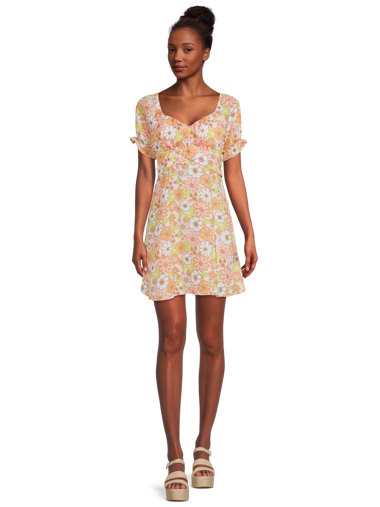 Madden Nyc Juniors Peasant Dress With Puff Sleeves And Back Tie Sizes Xs 3xl Walmart Com